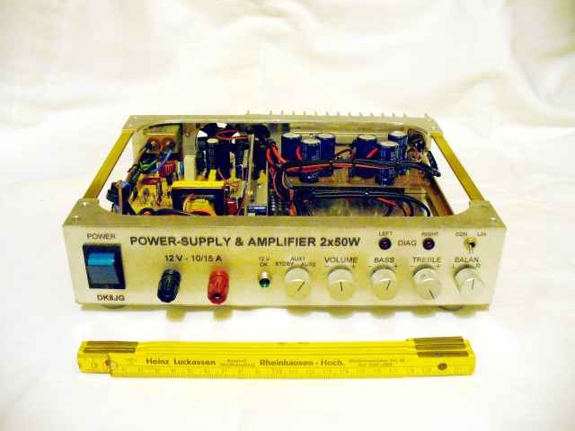 Umgebautes PC-Netzteil 13,5V 10/15A und Klangregeleinheit mit TDA1524A sowie 2x50W NF-PA mit 2 x TDA1562Q ( Alles Eigenbau auch das Gehäuse)