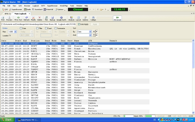 PSK31 mit dem Programm Digital Master 780 von HB9DRV.